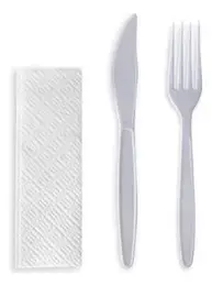 Pacotes com 50 kits Caixa de 5 pacotes (250 kits)Kit acompanha garfo, faca e guardanapo